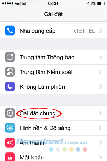 IMEI cũng được liệt kê trong phần thông tin thiết bị. Trên màn hình chính bạn chỉ cần nhấn vào phần Cài đặt, sau đó cửa sổ Cài đặt xuất hiện thì kéo xuống tiếp tục nhấn vào Cài đặt chung.