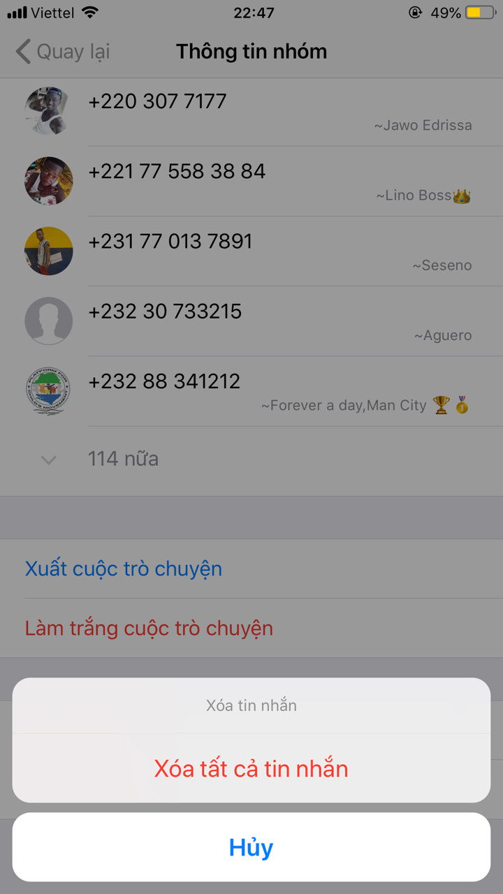 Cửa sổ Thông tin nhóm xuất hiện hãy kéo xuống phía dưới để tìm dòng chữ Làm trắng cuộc trò chuyện.