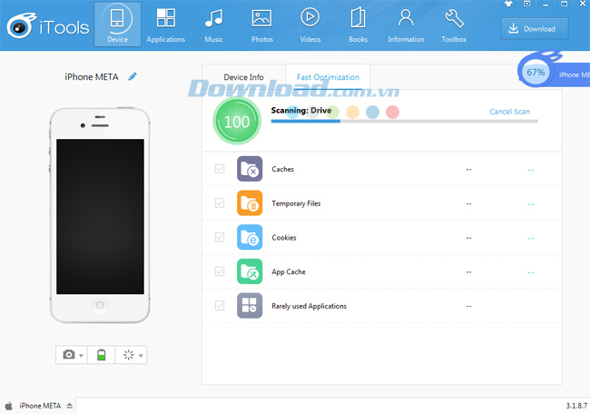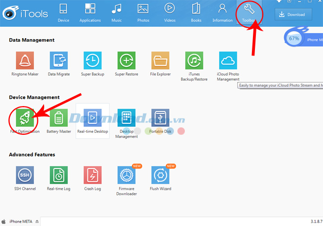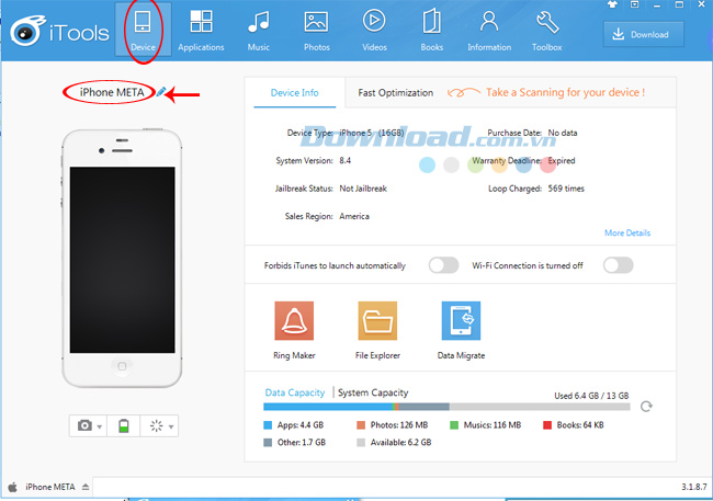 Tuy nhiên, khác những smartphone khác được tích hợp sẵn kho tiện ích ngay trên điện thoại như Android, iPhone nói riêng và các thiết bị sử dụng iOS nói chung cần phải có một công cụ khác, đó là iTunes, hoặc iTools. Trong bài viết này, Download.vn lựa chọn iTools để giới thiệu tới các bạn bởi nó và iTunes đều là công cụ có những chức năng giống nhau, nhưng iTools hơn hẳn ở giao diện đơn giản, dễ sử dụng, thêm vào đó là vô cùng gọn nhẹ và dễ dàng hoạt động trên bất kỳ máy tính nào.