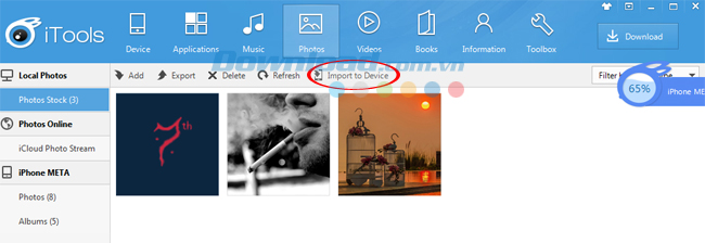 Chọn vào Import to Device để đưa ảnh vào thiết bị.