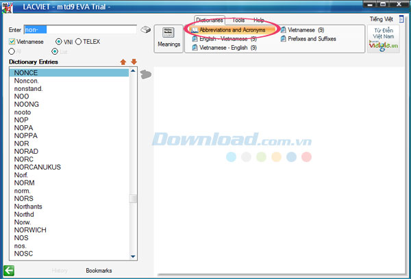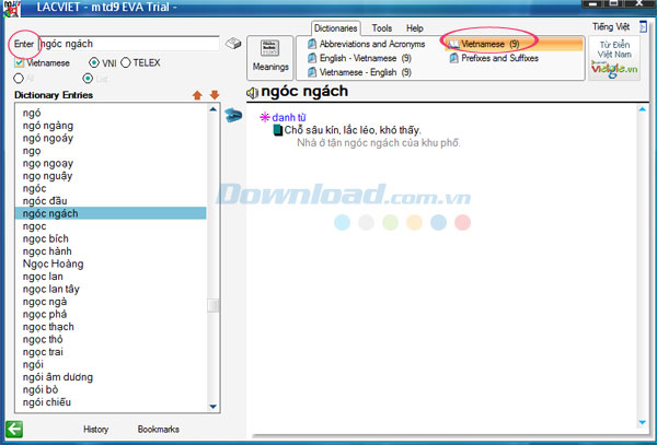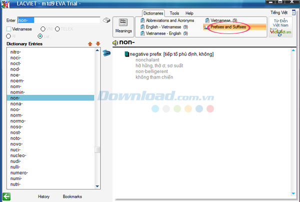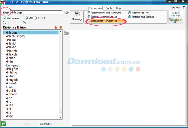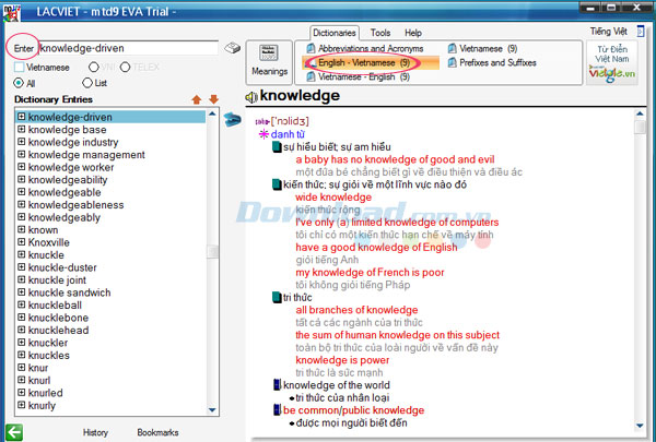 Trên đây, Download.vn vừa hướng dẫn cho bạn cách sử dụng Lạc Việt mtd9 EVA để tra cứu từ điển Anh-Việt, Việt Anh, Việt-Việt ,vv. Hy vọng rằng thông qua bài viết chia sẻ này, các bạn sẽ dễ dàng thao tác chương trình hơn.