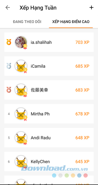 Ứng dụng học ngoại ngữ LingoDeer cũng cung cấp cho người học một bảng xếp hạng theo tuần và tính năng Thành tựu để tiện theo dõi những thành viên khác cũng như quá trình học tập của mình.