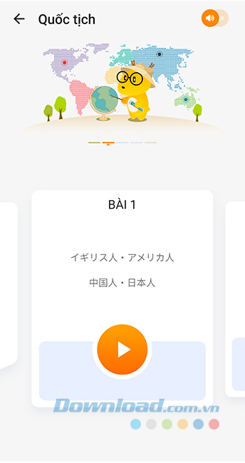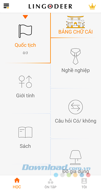 Bước 3: Ví dụ, chúng ta sẽ lựa chọn học tiếng Nhật, tại giao diện đầu tiên, chúng ta sẽ được lựa chọn chủ đề của chương trình học.