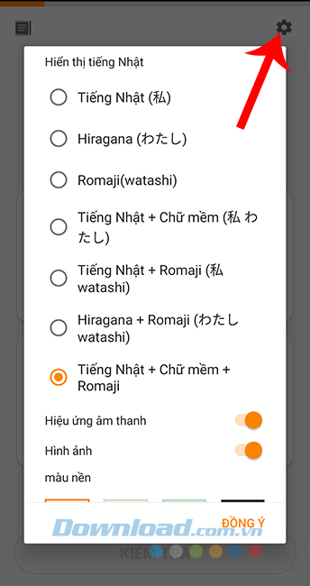 Ở góc trên, bên phải màn hình là biểu tượng cài đặt, các bạn chạm vào đó để xem các tuỳ chọn bổ sung, thay đổi cho chương trình học của mình.