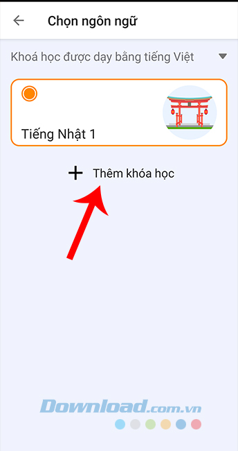 Nếu muốn thay đổi chương trình học, đơn giản chỉ cần quay về giao diện chọn ngôn ngữ và gói học ban đầu (bước 2), sau đó chọn Thêm khoá học và lặp lại thao tác.