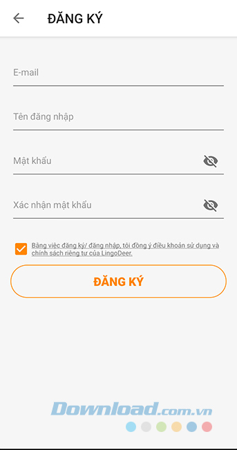 Cách đăng ký tài khoản LingoDeer khá đơn giản, bạn chỉ cần điền địa chỉ email, tên đăng nhập và mật khẩu, sau đó xác nhận một số thông tin cá nhân khác là đã có một tài khoản cho riêng mình.