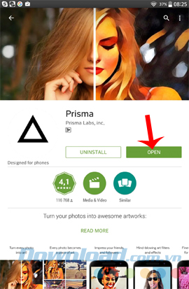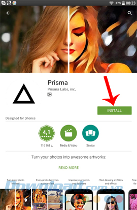 Bước 1: Đương nhiên là trước khi sử dụng, cần phải tìm kiếm và tải Prisma từ Google Play về đã.