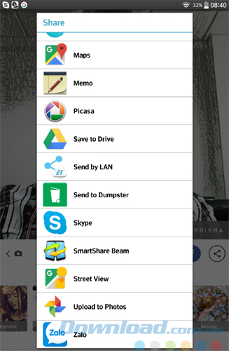 Chưa hết, công cụ tạo ảnh nghệ thuật này còn cho phép người dùng lưu lại ảnh đã chỉnh sửa vào thiết bị hoặc chia sẻ ảnh này lên các dịch vụ, mạng xã hội khác như Facebook, Google Drive, Maps, Picasa hay Skype, Zalo...