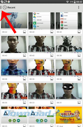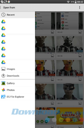 Cũng có thể chọn vào biểu tượng ba dấu gạch ngang ở góc trên, bên trái (bên cạnh Recent) để có thể lấy và sử dụng ảnh trong album ảnh, trong Photos hoặc Google Drive.