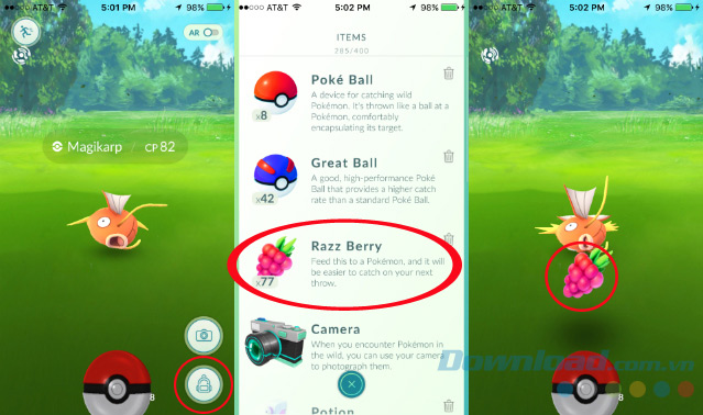 Một trong những cách để thực hiện điều đó là Razz Berry, một vật phẩm có hình dạng giống chùm nho, có tác dụng "nhử mồi", khiến việc thu phục đám Pokemon cứng đầu trở nên dễ dàng hơn.