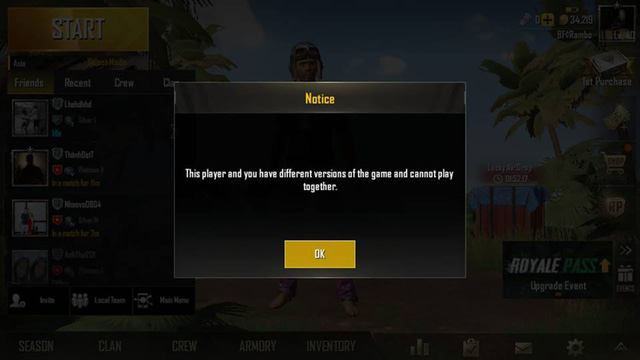Trước tiên hãy kiểm tra xem game có thông báo yêu cầu cập nhật chưa, nếu có hãy nhanh chóng cập nhật để game PUBG Mobile trên máy của bạn cùng phiên bản với bạn cùng chơi. Nếu chưa bạn có thể kiểm tra theo cách dưới đây.