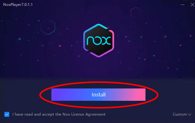 Sau khi tải xong, các bạn mở file cài đặt lên sau đó nhấn chọn nút Install (Nhớ tích vào ô I have read and accept the Nox...)