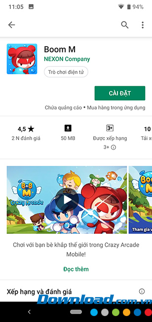Bước 3: Nhấn vào Cài đặt để cài game cho máy, chờ khi game tải xong, chọn tiếp vào Mở để khởi chạy game đặt boom này trên Android.