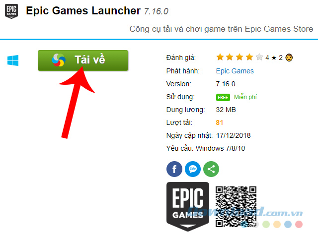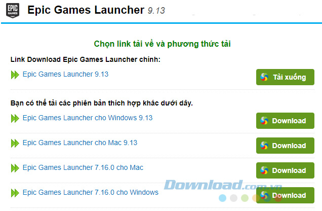 Bước 1: Các bạn truy cập vào trang hỗ trợ download Epic Games Launcher về máy tính - https://download.com.vn/epic-games-launcher/download và chọn vào Tải về.