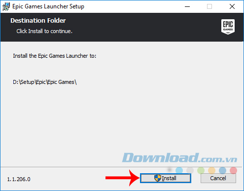 Bước 5: Nhấp vào Install để cài đặt Epic Games Launcher trên máy tính.