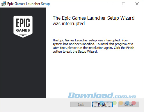 Bước 6: Chờ tới khi quá trình cài đặt hoàn thành, nhấn vào Finish để đóng cửa sổ này lại và khởi động Epic Games Launcher luôn.