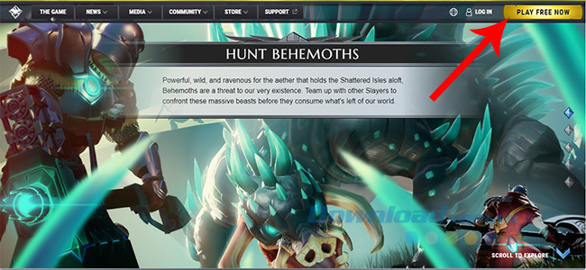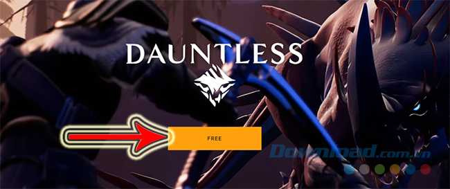 Bước 1: Các bạn truy cập vào trang chủ của game tại địa chỉ https://playdauntless.com/game, sau đó nhấn chuột trái vào Play Free Now ở góc trên, bên phải màn hình như dưới đây.