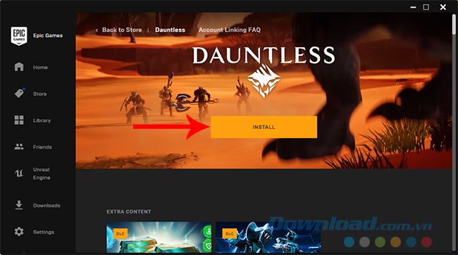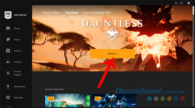 Cuối cùng, chỉ cần chọn vào game hoặc nhấn chuột trái vào nút Install để cài đặt Dauntless.