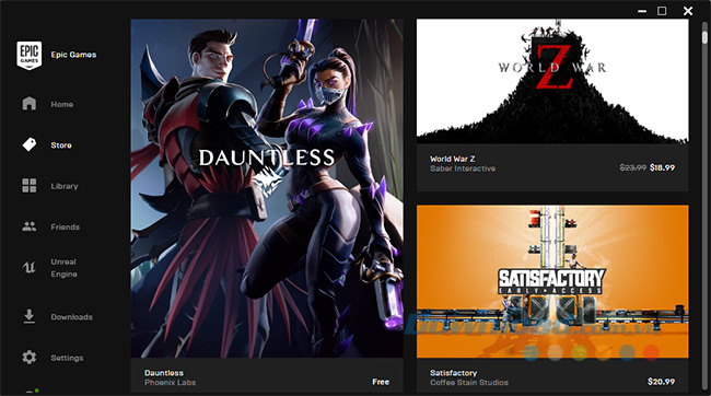 Bước 2: Hiện tại, game Dauntless đang hiển thị sẵn tại giao diện chính nên bạn có thể click chuột trực tiếp vào đó. Còn nếu không, có thể chọn vào mục Store ở danh sách bên trái rồi tìm kiếm game này.