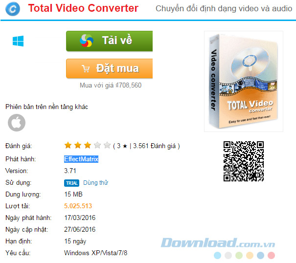 Với khả năng đổi Video sang FLV, Video sang 3GP hay đổi Audio sang WMA... Total Video Converter đang dần chiếm được sự tin tưởng và cảm tình từ phía người dùng, đây cũng là một trong những cái tên nổi bật nhất trên thị trường hiện nay.
