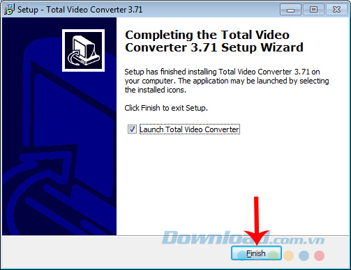Chọn Finish để đóng lại cửa sổ cài đặt. Có thể tick vào Launch Total Video Converter để chạy ứng dụng ngay khi đóng lại.