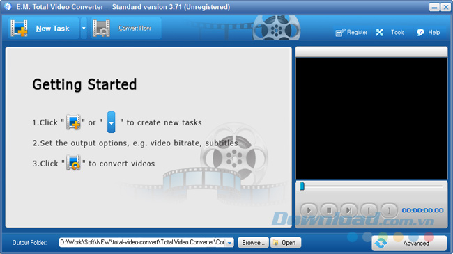 Và đây là giao diện chính của phần mềm chuyển đổi định dạng video Total Video Converter trên máy tính.