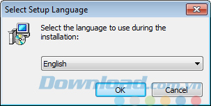 Bước 2: Giao diện đầu tiên là chọn ngôn ngữ, các bạn chọn tiếng Anh rồi OK.