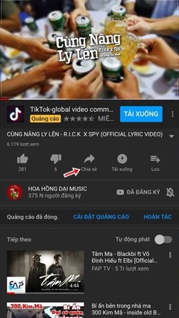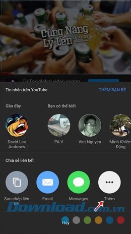 Tại giao diện phát video YouTube nhấn nút Chia sẻ. Chúng ta sẽ lựa chọn ứng dụng chia sẻ video, nếu chưa thấy Siri Shortcuts xuất hiện tại đây thì nhấn vào nút Thêm để thêm lựa chọn.