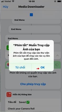 Khi hoàn tất, Media Downloader sẽ yêu cầu bạn cho phép được lưu video vào thư viện của hệ thống, hãy nhấn OK để xác nhận cấp phép. Sau đó hãy kiểm tra mục video trong ứng dụng ảnh sẽ thấy video tải về xuất hiện tại đó.