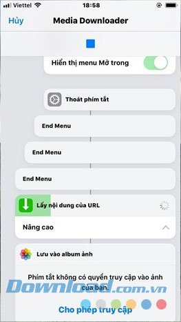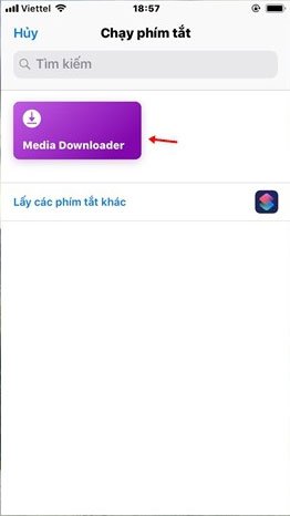 Lúc này ứng dụng Shortcuts bạn sẽ thấy xuất hiện ứng dụng Shortcut với phím tắt Media Downloader đã được tạo sẵn.
