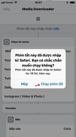 Cửa sổ nhỏ thông báo Phím tắt này đã được nhập từ Safari, Bạn có chắc chắn muốn chạy không? --> Phím tắt chạy.