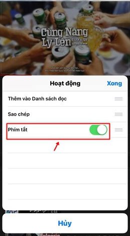 Lúc này khi quay lại giao diện chia sẻ bạn sẽ thấy xuất hiện Phím tắt hãy nhấn chọn vào nó.