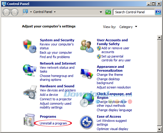 Bước 2: Cửa sổ Control Panel xuất hiện, nhấn vào Uninstall a program ở mục Programs để gỡ bỏ những chương trình không cần thiết đi.