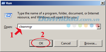 Bước 1: Mở cửa sổ Run lên, gõ dòng lệnh cleanmgr vào ô Open. Sau đó nhấn OK.