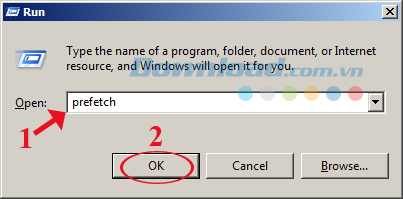 Bước 1: Mở cửa sổ Run lên, gõ lệnh prefetch vào ô Open. Sau đó, nhấn OK hoặc nhấn phím Enter.