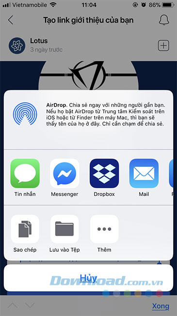 Bước 2: Các bạn chạm vào nút Sao chép liên kết bên dưới để copy lại đường link, hoặc bạn cũng có thể thực hiện theo phương pháp thủ công, đó là chạm và giữ vào đường dẫn để hiện lên các tùy chọn (trên hệ điều hành iOS), từ những tùy chọn này, chúng ta chạm vào Chia sẻ.