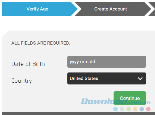 Đầu tiên, chọn tuổi và địa chỉ của bạn bằng cách nhấp vào mục Date of Birth và Country.