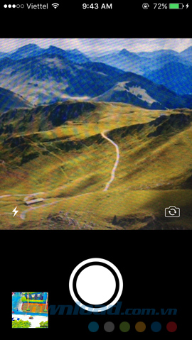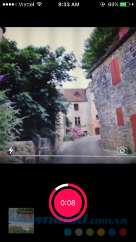Bước 3: Các bạn chạm vào biểu tượng chấm tròn, trắng giữa màn hình để quay clip sử dụng hoặc sử dụng ngay những video đã có sẵn ở trong máy.