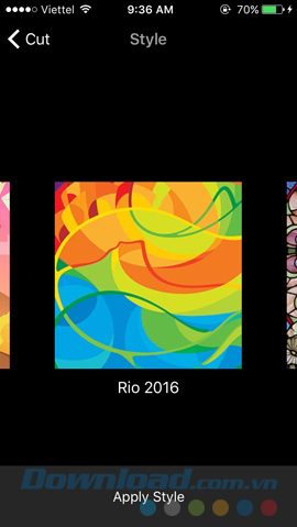 Bước 5: Chờ chút xíu để hoàn thành, sau đó, danh sách các bộ lọc sẽ hiện ra, chạm vào một "style" bất kỳ để áp dụng cho video của mình.
