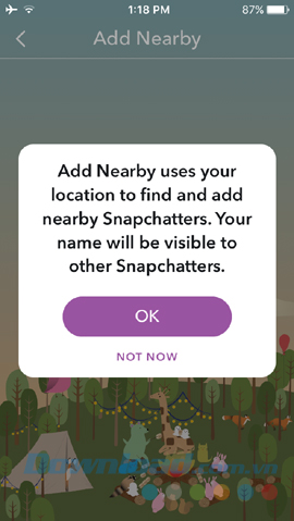 Cũng như "Kết bạn quanh đây" trên Zalo, chúng ta cũng sẽ phải bật định vị cho thiết bị, sau đó Snapchat sẽ tự động quét và show ra những người cùng sử dụng ứng dụng này để các bạn lựa chọn.