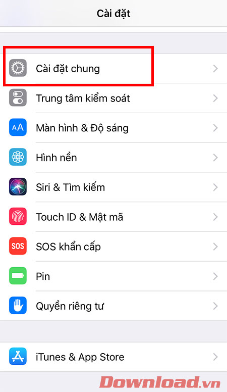 Đầu tiên hãy vào phần Cài đặt của iPhone -> Cài đặt chung.