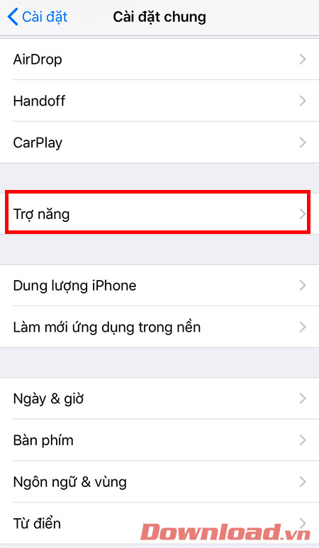 Trong phần Cài đặt chung, chọn Trợ năng.