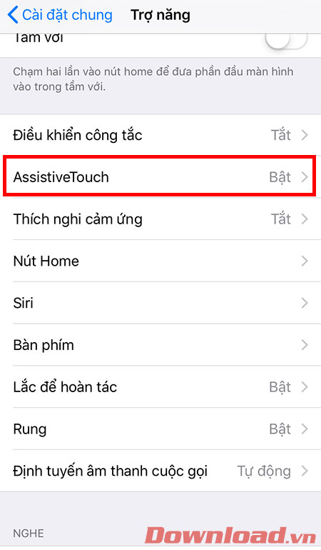 Lúc này, ta sẽ tiến hành tùy chỉnh nút Home ảo. Các bạn nhấn chọn: