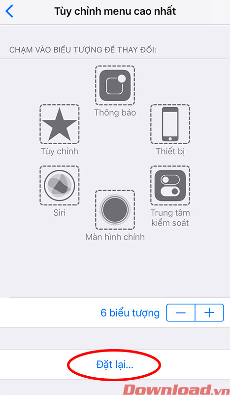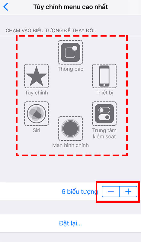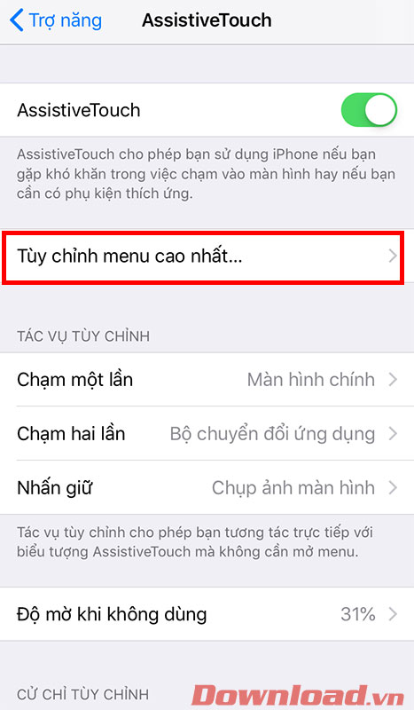 Nhấn chọn Tùy chỉnh menu cao nhất... Hãy đảm bảo rằng bạn bật AssistiveTouch rồi nhé.