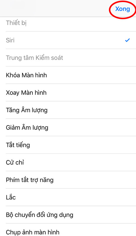 Tiếp tục chọn trong danh sách một tính năng muốn thêm vào hoặc thay thế rồi nhấn nút Xong. Người dùng có thể thêm vào tối đa 8 tính năng cho menu phím Home ảo.
