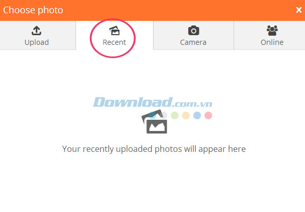 Ngoài ra, nếu muốn sử dụng các tấm hình được tải lên gần đây thì vui lòng nhấn nút Recent.