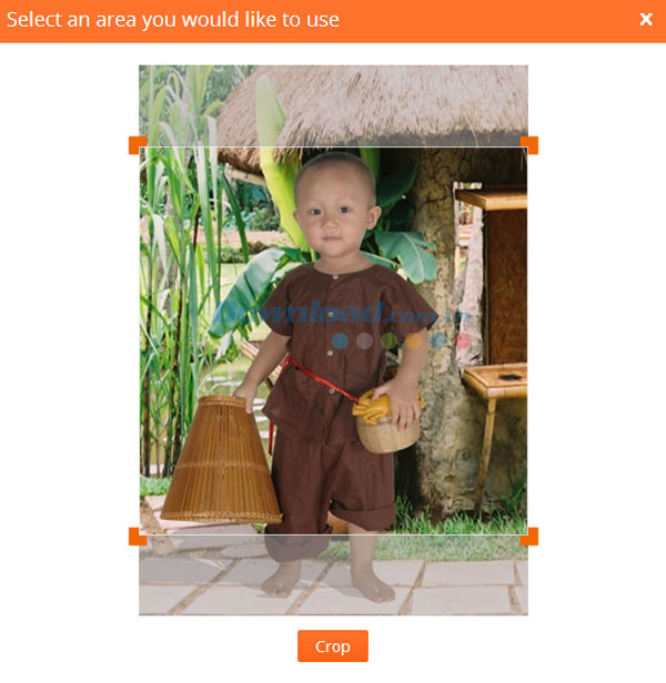 Sau khi chọn xong ảnh, vui lòng chờ đợi trong giây lát để bức ảnh được tải lên. Tiếp theo, chọn khu vực ảnh mà bạn muốn sử dụng. Khi hoàn tất, nhấn Crop để cắt.