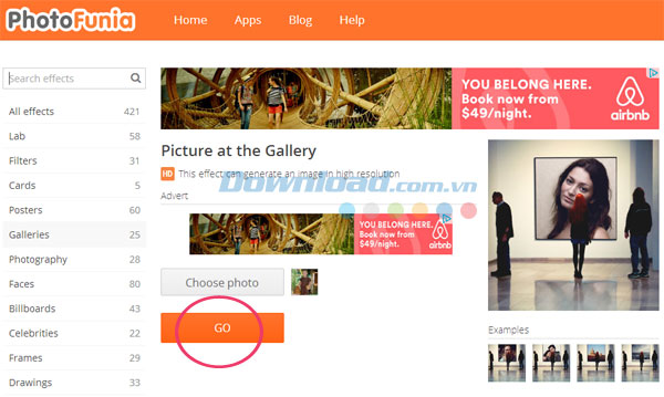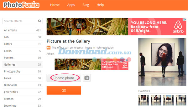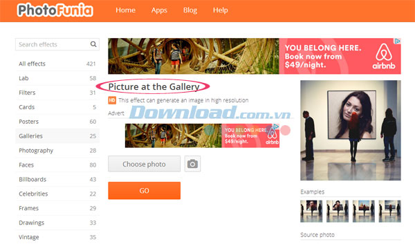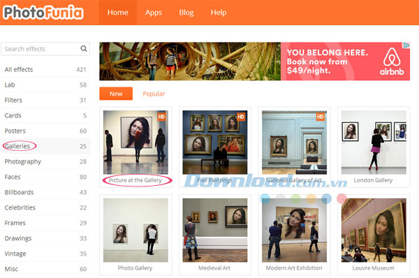Nếu thích hiệu ứng nào, bạn chỉ cấn nhấp chuột vào hiệu ứng đó. Chẳng hạn, ở đây Download.vn lựa chọn danh mục Galleries và chọn hiệu ứng Picture at the Gallery. Đơn giản, hãy nhấp chuột vào hiệu ứng này.