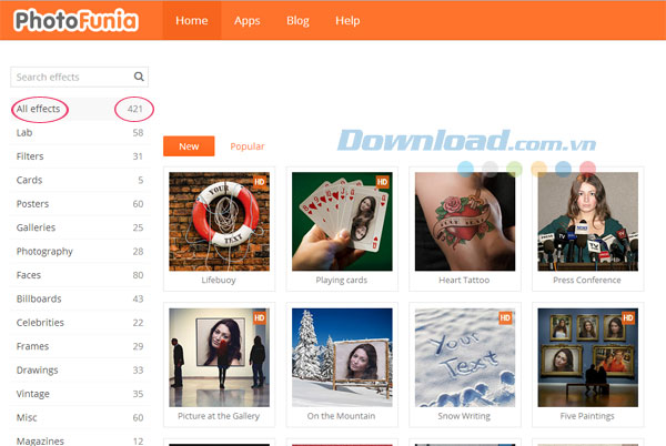 Các hiệu ứng được phân loại và sắp xếp theo các danh mục cũng như chủ đề riêng để người dùng thoải mái lựa chọn, sao cho phù hợp với mục đích của mình.