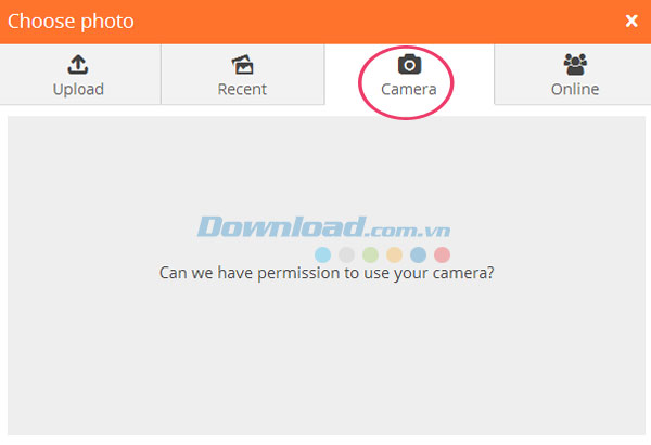 Hoặc, nếu máy tính của bạn có webcam thì hãy chụp một tấm hình mới bằng cách nhấp chuột vào nút Camera trên cửa sổ và cho phép chương trình sử dụng máy ảnh của mình.
